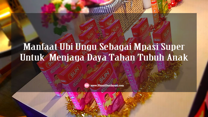Ubi ungu terkenal dengan kaya akan antosianin sumber anti oksidan alami yang berperan untuk mendukung daya tahan tubuh bayi. Ubi ungu banyak dikonsumsi karena mengandung beta karoten dan antosianin. Sun Ubi ungu dibuat dengan pengawasan yang tepat membuat turunan ubi ungu yang tahan lama dan aman dikonsumsi sebagai pendamping ASI dan bayi.