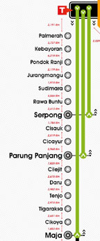 Setelah kereta ke Maja datang. Kami siap-siap untuk berangkat. Berapa jauuuh perjalanan kami ..mmm. Teman-teman bisa cek dari jalur kereta dibawah ini ternyata jauh bet ya …dari Palmerah ke Maja he he. Pemandangan selama perjalanan sangat bagus kanan kiri masih banyak pepohonan, Bangunan mulai dari yang modern hingga tradisional. Saya sendiri sempat melihat ada sebuah rumah yang masih megunakan timba untuk aktivitas sehari-hari *wow* pemandangan langka